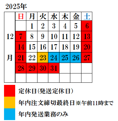 【年内発送分のご注文締切】